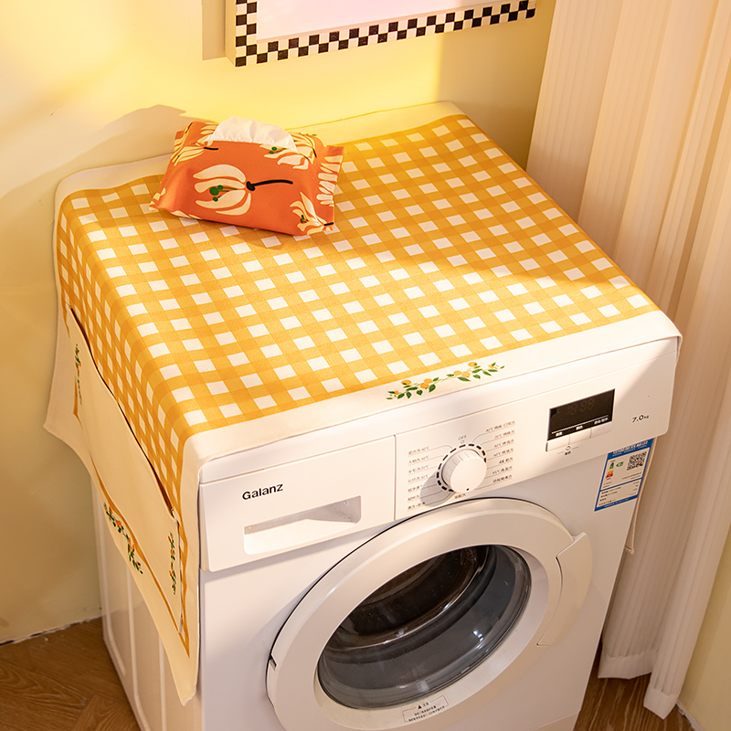 北欧风长方形防水茶几布双口袋防尘桌布加厚棉麻盖布格纹台布定制