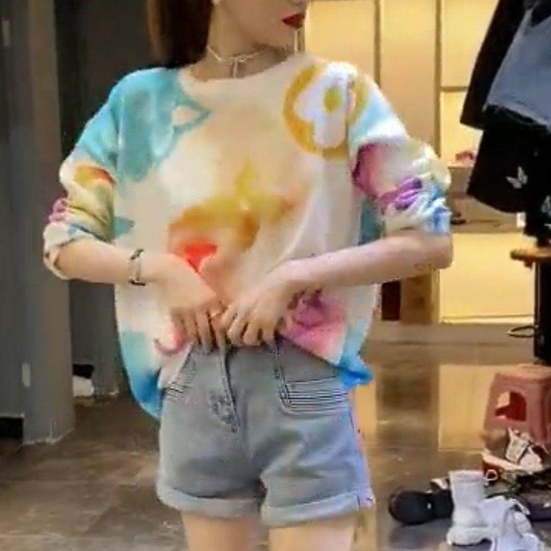 。2021早秋新款彩色水墨涂鸦毛衣女宽松慵懒风设计感小众针织衫上热门设计联盟服务商