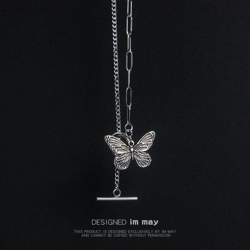 复古蝴蝶项链T小众设计感欧美钛钢手链ins网红嘻哈蹦迪闺蜜锁骨链热门设计联盟服务商