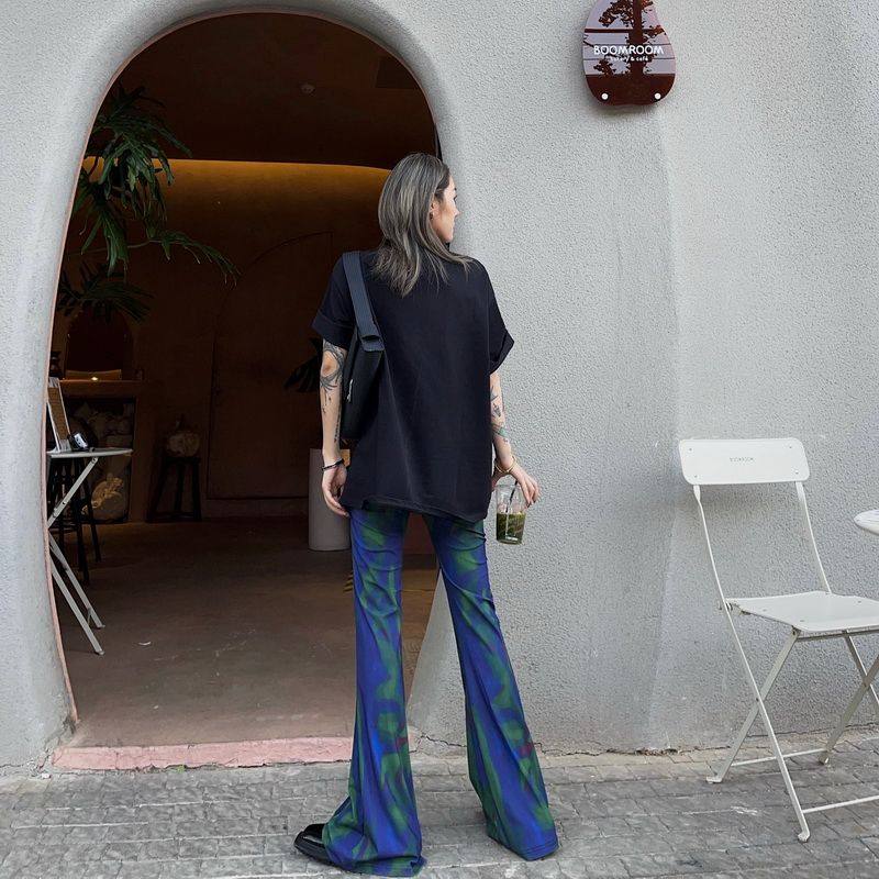 Akane 扎染撞色轻薄高修身显瘦微喇叭裤设计感甜辣长裤夏季薄款热门设计联盟服务商