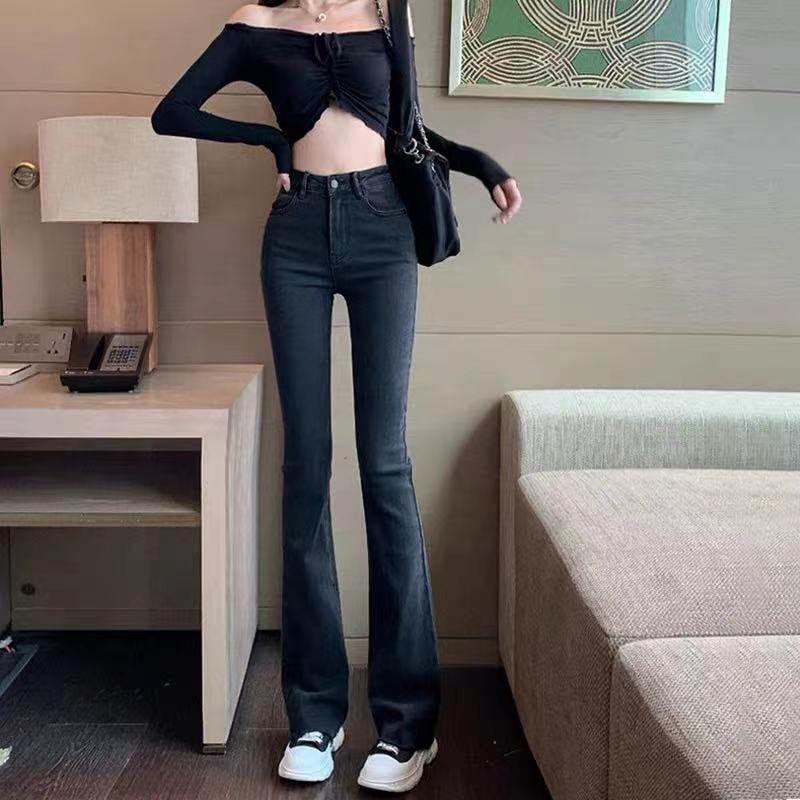 秋冬新款韩版设计感高腰镂空时尚修身chic力紧身牛仔裤女潮