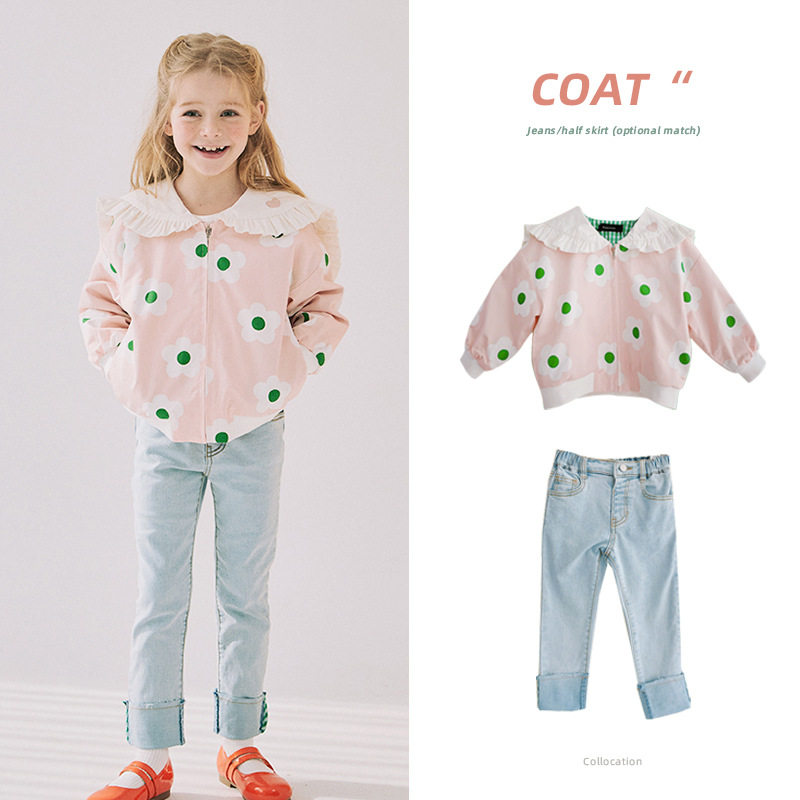 儿童外套2021春装新款韩版翻领拉链女童外套卡通小花宝宝衣服童装热门设计联盟服务商