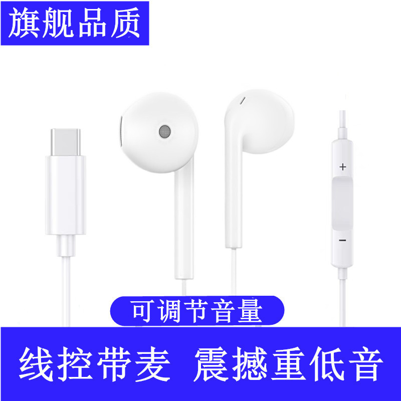 原装耳机有线适用于vivo华为oppo手机typec扁口高音质3.5半入耳式